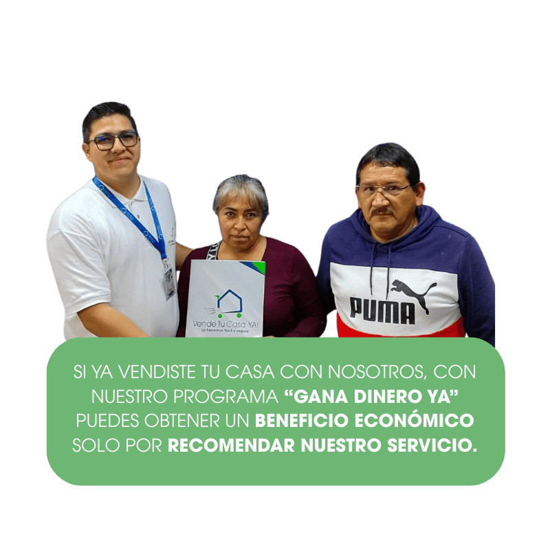 • Recomienda nuestro servicio y contáctanos con la persona que quiera vender su casa de manera rápida y segura.